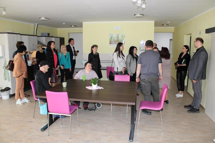 V uplynulém týdnu Domov Háj přivítal hned dvě milé zahraniční návštěvy. V pátek 6. 5. 2022 jsme přivítali delegaci z partnerského regionu Zakarpatská oblast Ukrajiny v čele s předsedou oblastní rady Vodymyrem Čubirkem. Společně s ním k nám přijel i náš pan hejtman Vítězslav Schrek a řada dalších hostů. I v náročné době ukrajinské krize je snahou obou regionů nezapomínat na normální život a běžné lidské priority. Ukrajinští hosté se zajímali především o transformaci a deinstitucionalizaci pobytových sociálních služeb a o způsob systémové podpory lidí s mentálním postižením formou komunitních služeb. Ačkoliv je nyní jejich základní snahou obnovit mír na celém území Ukrajiny, velmi si vážíme toho, že se i tak stále snaží pokračovat v humanizaci péče o lidi s postižením. Také odborná stáž ze Slovinska se 12. 5. 2022 přijela podívat, že i klienti s vysokou mírou podpory nemusejí žít v ústavní kolektivní budově, ale i pro ně má menší soukromější forma bydlení velký smysl. To potvrdila i bývalá ředitelka první transformované organizace v Kraji Vysočina - Domova bez zámku - Alena Brožková. Doufáme, že obě návštěvy byly spokojeny tak, jako my, a přejeme hodně úspěchů při transformačních procesech v jejich regionech.
